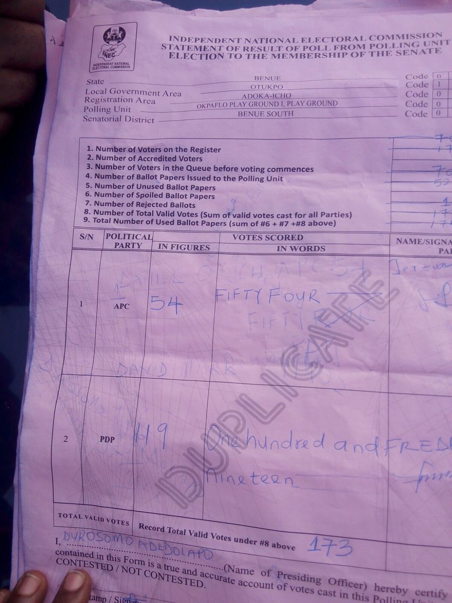 » Recently UPDATED #BenueSouthReRun Result sheet for elctoral election