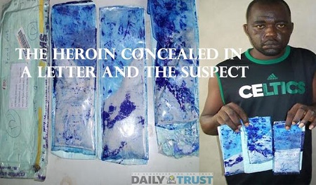 Officials of the National Drug Law Enforcement Agency (NDLEA) say they have discovered a letter laden with heroin in Lagos, Daily Trust reports.