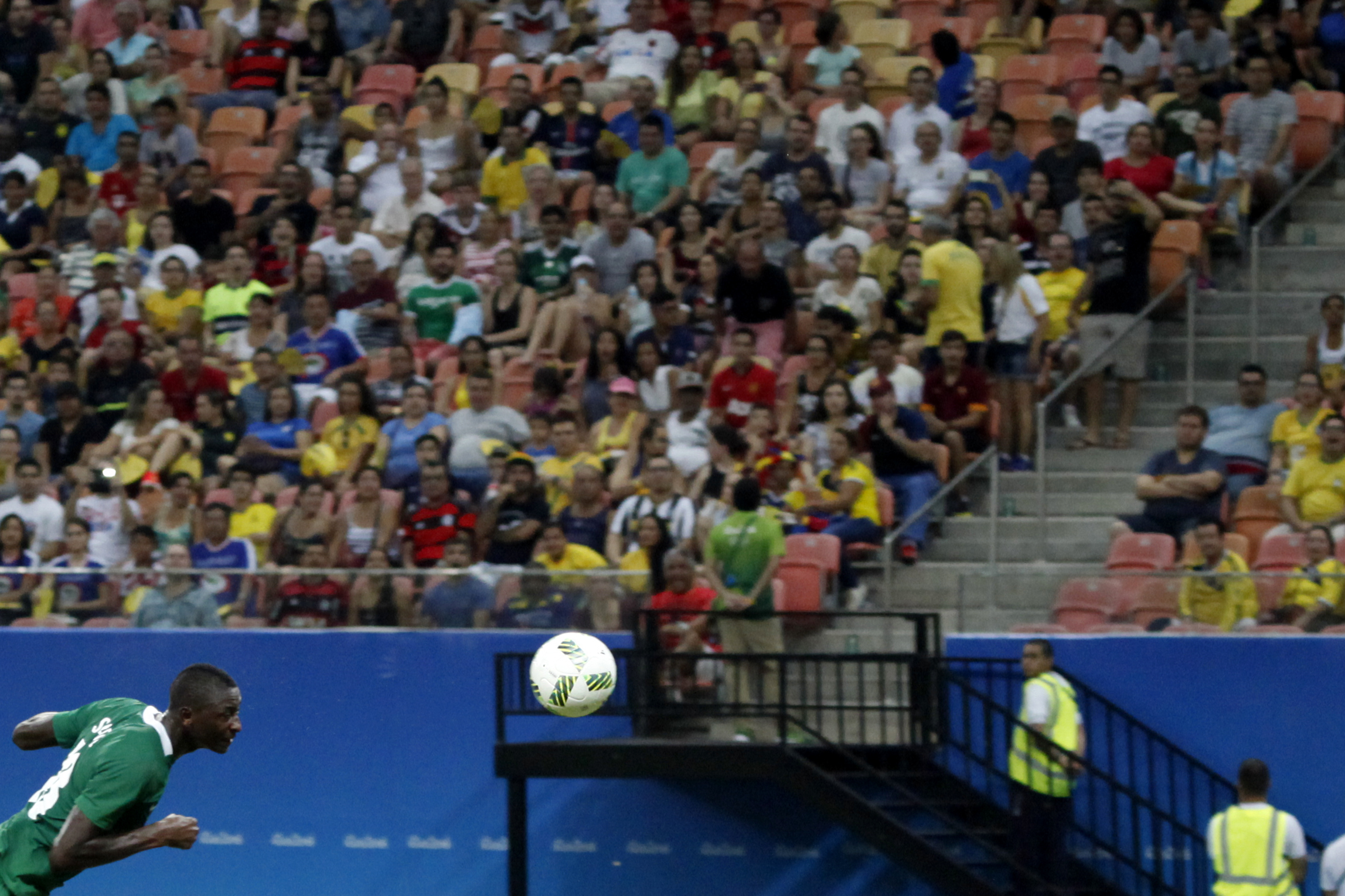 Nigeria's player Sadiq heads the ball to score his team's first goal during the football match between Sweden and Nigeria for the Olympic Games Rio 2016 in Arena Amazonia, Manaus, Brazil, August 7th, 2016.