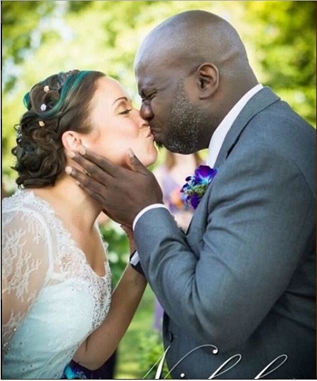 A man has got tongues wagging on the internet after a photo of him kissing his wife on their wedding day emerged.